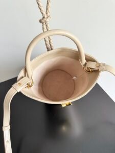 This small bag is always popular in summer. It can easily store sunscreen and mini 5-fold umbrella and other essential items when you go out for fun. It is opened and closed with a braided knot and a metal ring in the shape of a horseshoe buckle. The classic braiding is only used as an embellishment here, giving way to the simplicity of all leather. It is a true combination of innovation and classics. It also comes with a detachable long shoulder strap. Friends who don’t like shoulder carrying can have more choices if they only buy this bag.