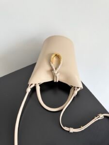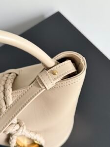 This small bag is always popular in summer. It can easily store sunscreen and mini 5-fold umbrella and other essential items when you go out for fun. It is opened and closed with a braided knot and a metal ring in the shape of a horseshoe buckle. The classic braiding is only used as an embellishment here, giving way to the simplicity of all leather. It is a true combination of innovation and classics. It also comes with a detachable long shoulder strap. Friends who don’t like shoulder carrying can have more choices if they only buy this bag.