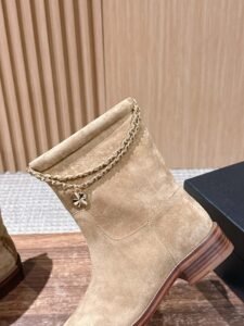 Chanel Four-leaf clover double C buckle chain boots suede short boots