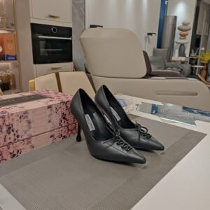 A signature Jimmy Choo silhouette, the Scarlett pump is set on a 95mm ‘drop’ heel and defined by a corset detail on the upper; carefully crafted by threading leather lace by hand, which is secured with an invisible stitch. The sole features a rubber island, ensuring flexibility; this is in addition to the padding – designed for maximum comfort – that features in the footbed of every Jimmy Choo shoe. These sculptural details make the Scarlett a house icon.