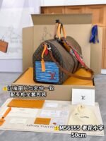 The Patchwork theme is integrated into this travel bag, creating a variety of styles with a trendy perspective. This classic soft travel bag is equipped with a leather top handle and two side straps. It is the size of a carry-on luggage and has ample internal space.
