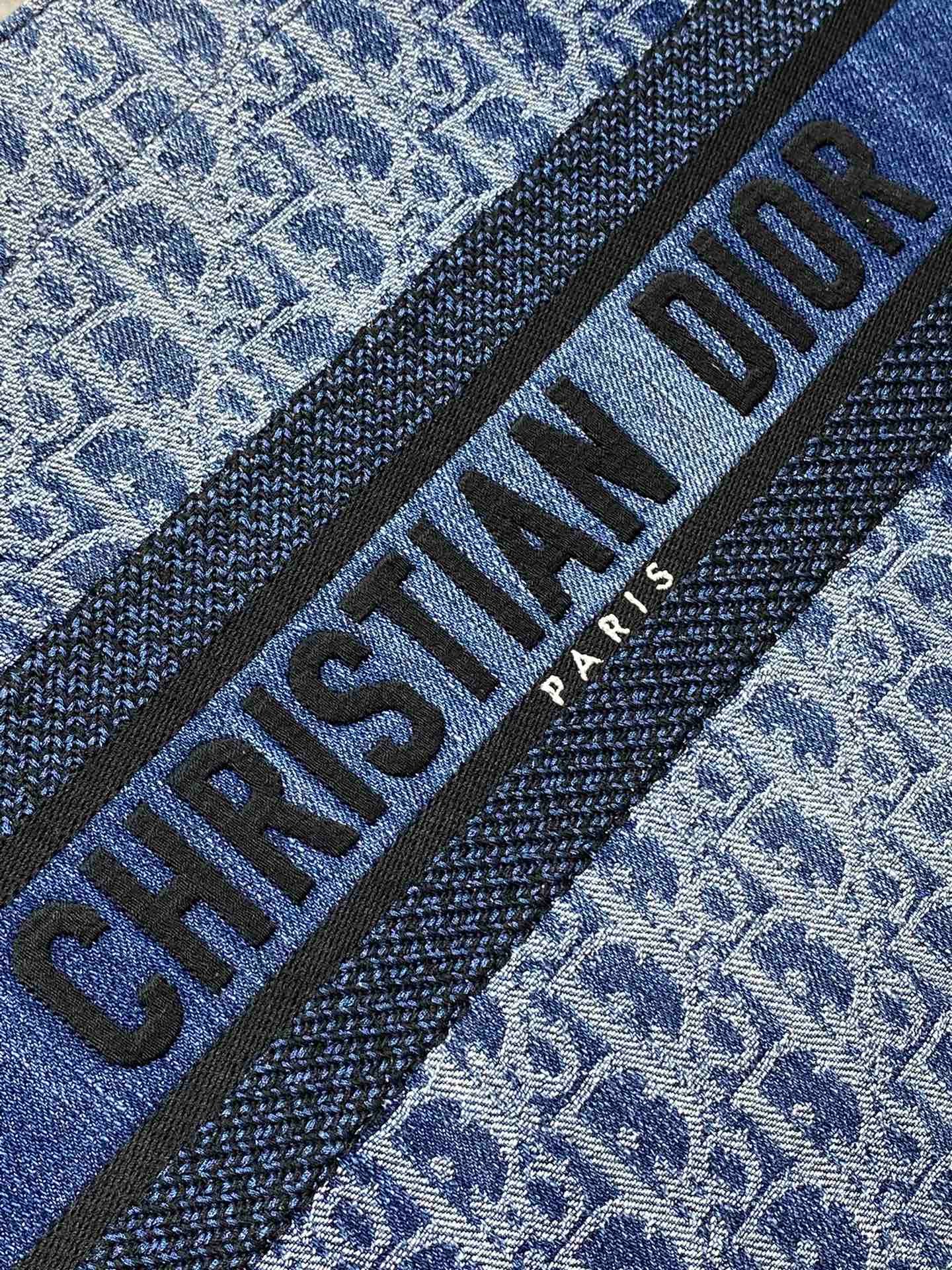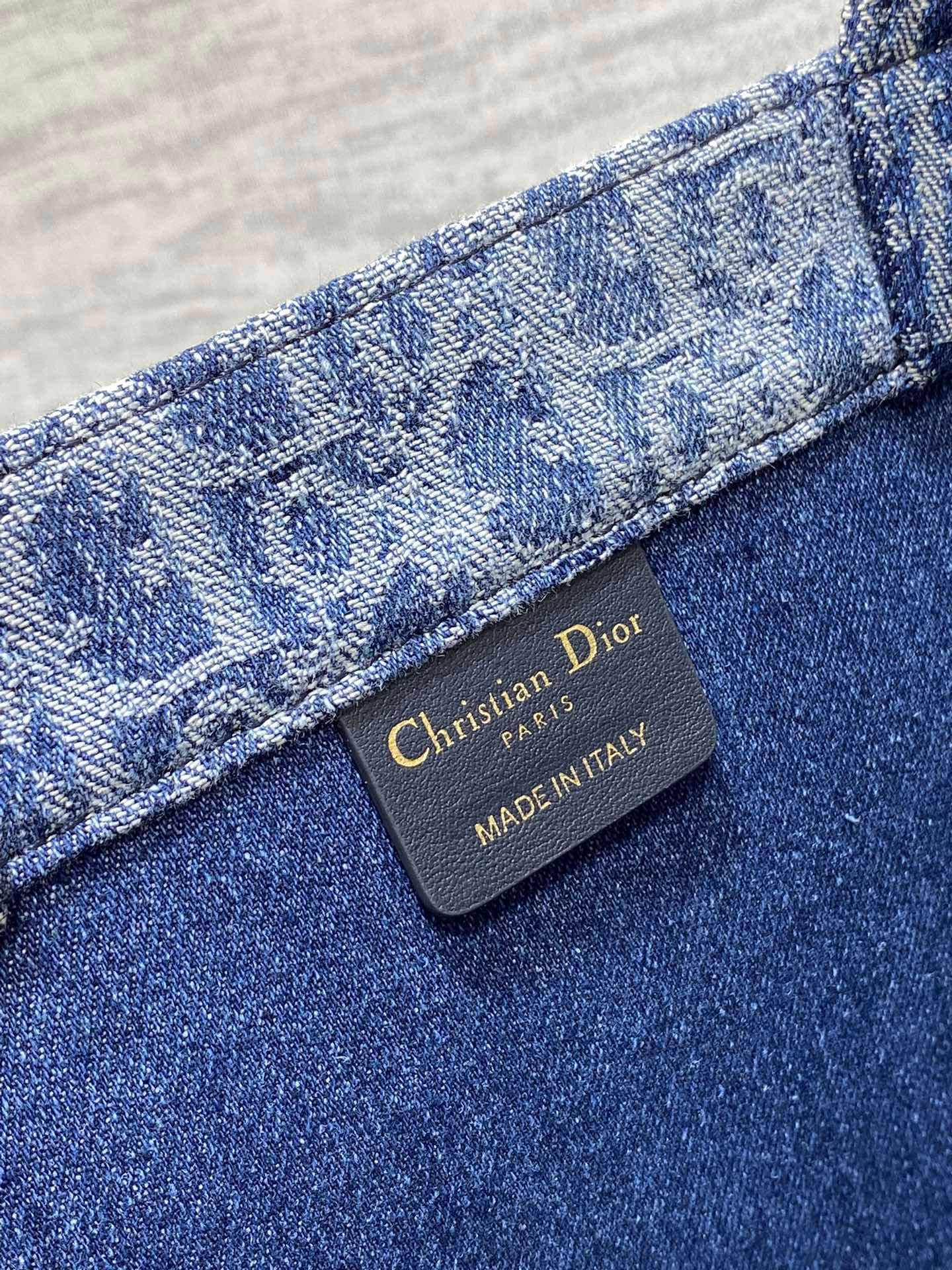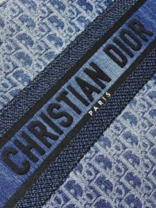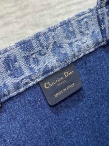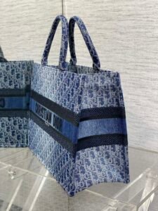 The Dior Book Tote, designed by Christian Dior Creative Director Maria Grazia Chiuri, has become a hallmark of the Dior aesthetic. Crafted from blue Denim Dior Oblique jacquard, it offers a fresh take on the House’s iconic motif with an irregular stonewashed effect. Its stylish design allows for ample storage for all your daily essentials. This medium-sized tote bag, embellished with the contrasting Christian Dior Paris signature on the front, showcases the House’s craftsmanship and is suitable for hand-carrying.