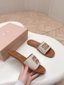 miu miu Canvas and leather slides