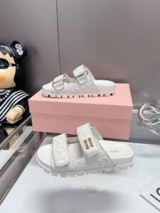 miu miu Matelassé nappa leather slides